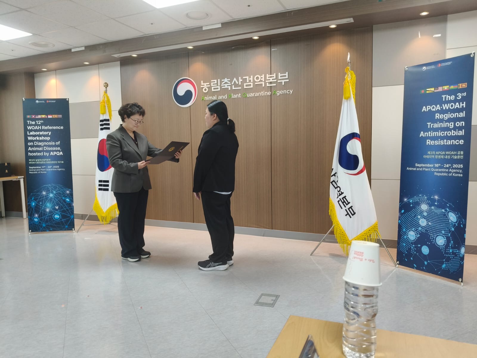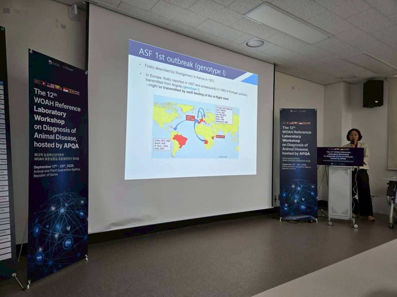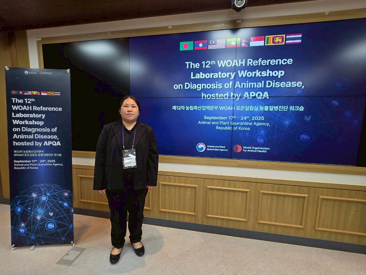 นายสัตวแพทย์นฤพล พร้อมขุนทด ผู้อำนวยการศูนย์วิจัยและพัฒนาการสัตวแพทย์ภาคเหนือตอนล่าง มอบหมายให้สัตวแพทย์หญิงจารุณี จงเชิดชูตระกูล นายสัตวแพทย์ปฏิบัติการ เข้าร่วมประชุมเชิงปฏิบัติการ The 12th9 Workshop on Diagnosis of Animal Diseases ร่วมกับนางสาวพิไลพร เจติยา นายสัตวแพทย์ชำนาญการพิเศษ จากศูนย์วิจัยและพัฒนาการสัตวแพทย์ภาคตะวันตก ณ Laboratories of Animal and Plant Quarantine Agency สาธารณรัฐเกาหลี ซึ่งในการประชุมเชิงปฏิบัติการครั้งนี้จัดโดย Animal and Plant Quarantine Agency (APQA) และมีผู้แทนจากอีก 7 ประเทศเข้าร่วมประชุมอีกด้วย ทั้งนี้ได้มีการสัมมนาและแลกเปลี่ยนความรู้ทางด้านเทคนิคการตรวจวินิจฉัยโรคสัตว์ที่สำคัญในห้องปฏิบัติการระหว่างประเทศ การวิจัยและนวัตกรรมใหม่ๆในการตรวจโรค และการควบคุมป้องกันโรคต่างๆอันเป็นประโยชน์ในการนำมาประยุกต์ใช้กับการตรวจโรคสัตว์ในพื้นที่รวมถึงมาตรการป้องกันโรคสัตว์ในพื้นที่จริงต่อไป