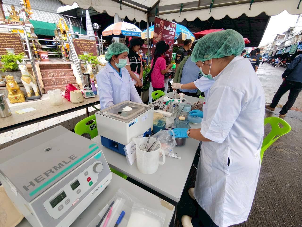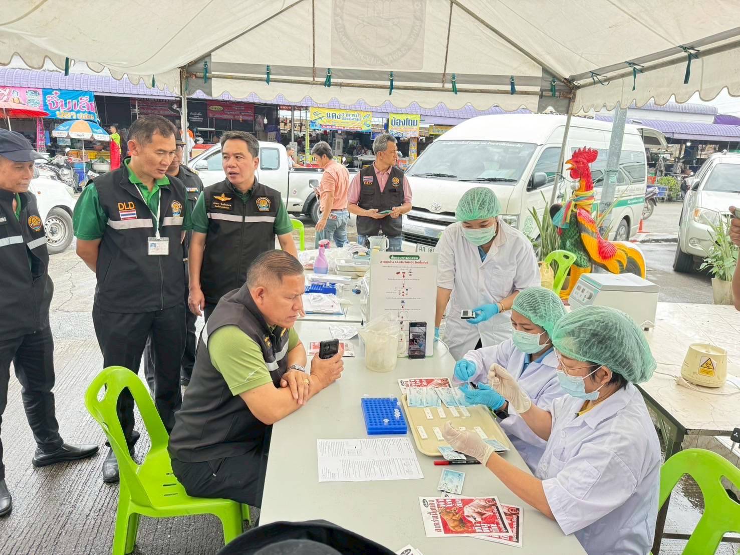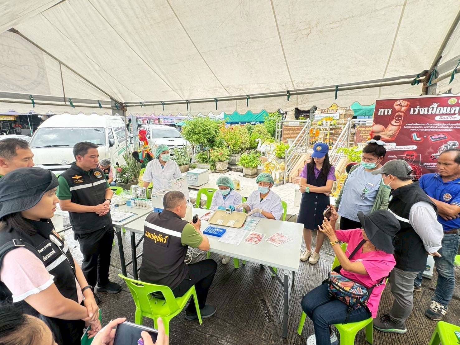 นายสัตวแพทย์นฤพล พร้อมขุนทด ผู้อำนวยการศูนย์วิจัยและพัฒนาการสัตวแพทย์ภาคเหนือตอนล่าง มอบหมายให้ นางสาววิลาวรรณ บุญจันทร์ นักวิทยาศาสตร์การแพทย์ปฎิบัติการ นางสาวสโรชา วิชาสิทธิ์ นักวิทยาศาสตร์การแพทย์ และนายจิรวัฒน์ เกษประสิทธิ์ พนักงานผู้ช่วยสัตวบาล ออกปฏิบัติงานบูรการร่วมกับสำนักงานปศุสัตว์เขต 6 สำนักงานปศุสัตว์จังหวัดนครสวรรค์ ด่านกักกันสัตว์นครสวรรค์ รูปแบบชุดเฉพาะกิจของกรมปศุสัตว์ โดยปฏิบัติงานร่วมกับ สำนักงานสาธารณสุขจังหวัดนครสวรรค์ เทศบาลเมืองนครสวรรค์และองค์กรปกครองส่วนท้องถิ่น ตามโครงการแก้ไขปัญหาการใช้สารเร่งเนื้อแดงในภาคปศุสัตว์ ในพื้นที่ อำเภอเมืองนครสวรรค์ จังหวัดนครสวรรค์ ทำการสุ่มตรวจสารเร่งเนื้อแดงในเนื้อสัตว์ จากสถานที่จำหน่ายเนื้อสัตว์จากตลาดสดเทศบาลนครสวรรค์ 5 แหล่ง จำนวน 9 ตัวอย่าง โดยใช้ชุดทดสอบสารเร่งเนื้อแดงชนิดรวดเร็วที่อ่านผลได้ทันที (Strip Test) พบว่าให้ผลลบทุกตัวอย่าง
